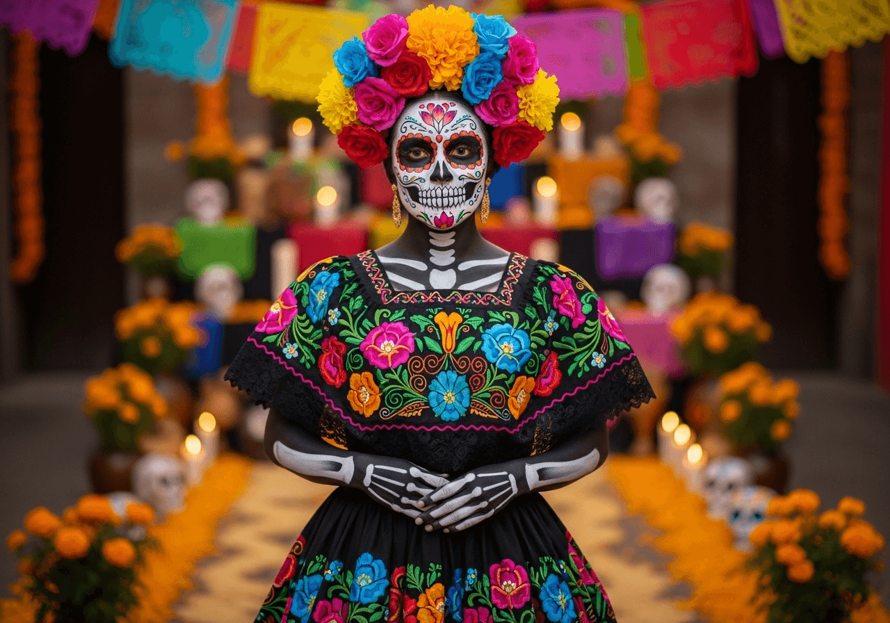 For a colorful and fun look, why not try a sugar skull design inspired by the Day of the Dead? Use face paints or markers to create intricate patterns, including flowers, swirls, and dots. This look is festive, easy to put together, and works well for both kids and adults. Plus, it can be as detailed or simple as you like, making it customizable for anyone in the family.