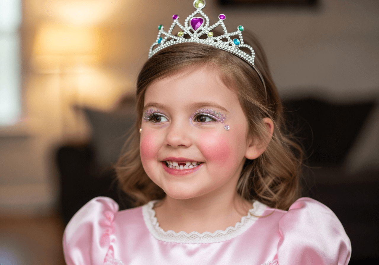 If your little one dreams of being a princess for Halloween, this simple makeup idea will make their wish come true in minutes. Use a little glitter, some rosy blush, and a sparkling crown, and voilà! This look is perfect for busy mornings, whether you’re getting your child ready for school or preparing for a fun evening of trick-or-treating. A fast and easy way to bring that royal sparkle to life!